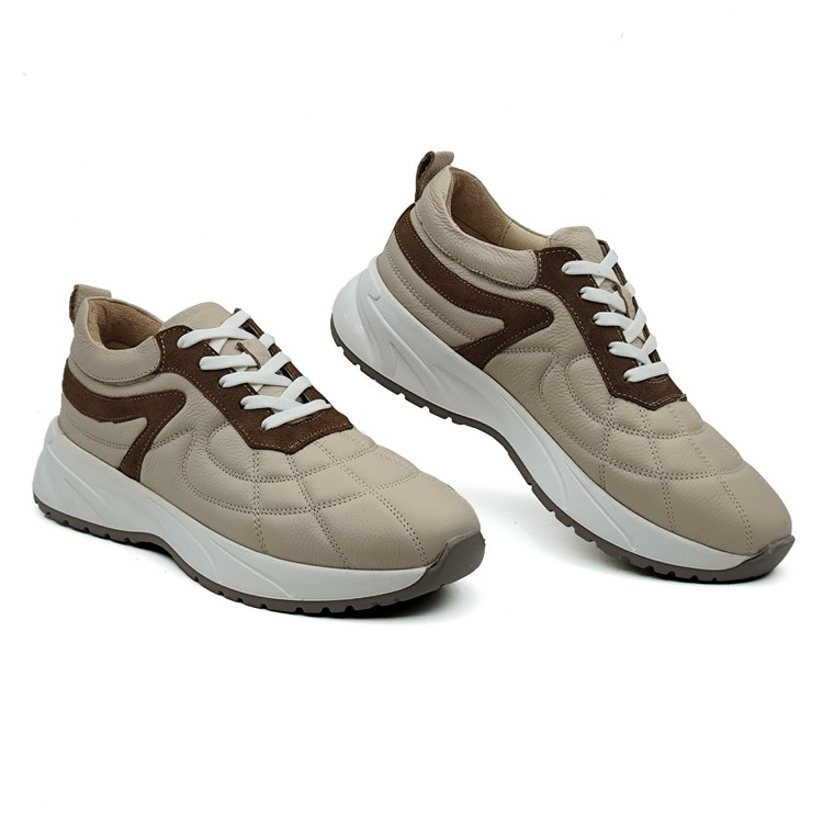 این کفش زنانه از چرم طبیعی مرغوب تهیه شده و برای استفاده روزمره و فعالیتهای اسپرت انتخابی عالی است. رویه کفش از چرم طبیعی با کیفیت بالا ساخته شده که به زیبایی و دوام محصول افزوده است. همچنین، آستری داخلی کفش هم از چرم طبیعی تهیه شده تا علاوه بر راحتی، به تنفس پا کمک کند.
