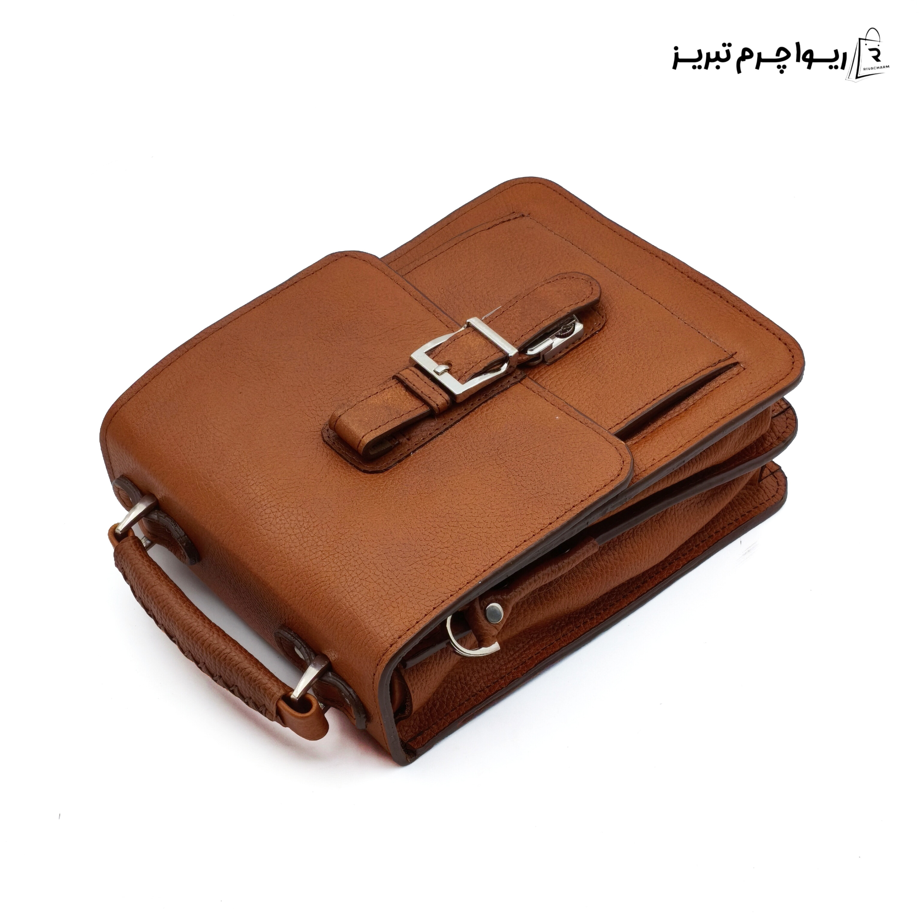کیف نیم اداری دستی و دوشی چرم مردانه رویه کار چرم گاوی فلوتر میلینگ کار شده داخل کار از اشبالت طبیعی گاوی کار شده یراق آلات فلزی خارجی رنگ ثابت می باشد دارای بند دوشی چرم دولایه مناسب استایل های رسمی و نیمه رسمی ، دارای قفل رمز دار که میتوانید رمز دلخواه خود را تنظیم کنید . این کار دو طبله است و انواع اقسام مدارک را میتوان باهاش به همراه داشت