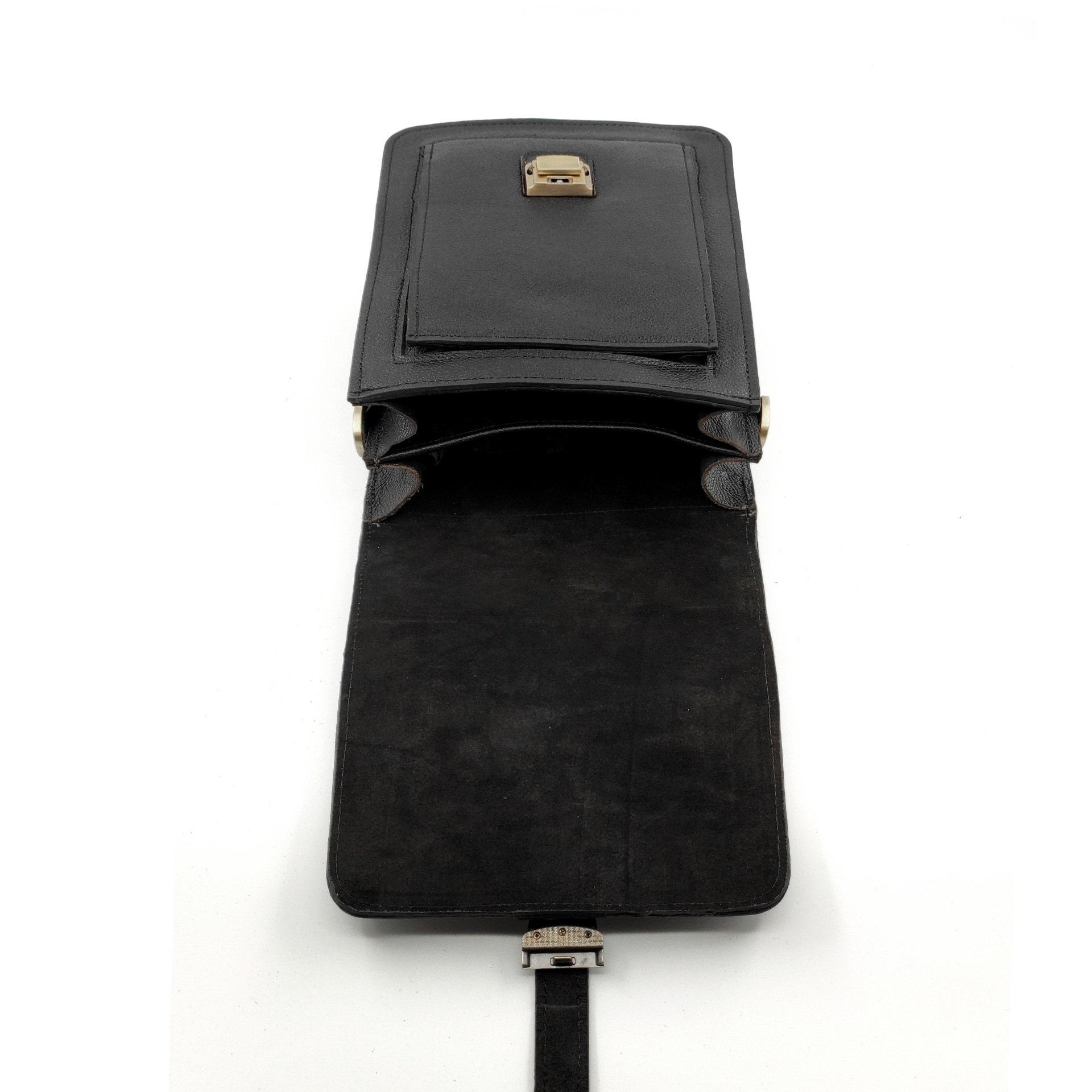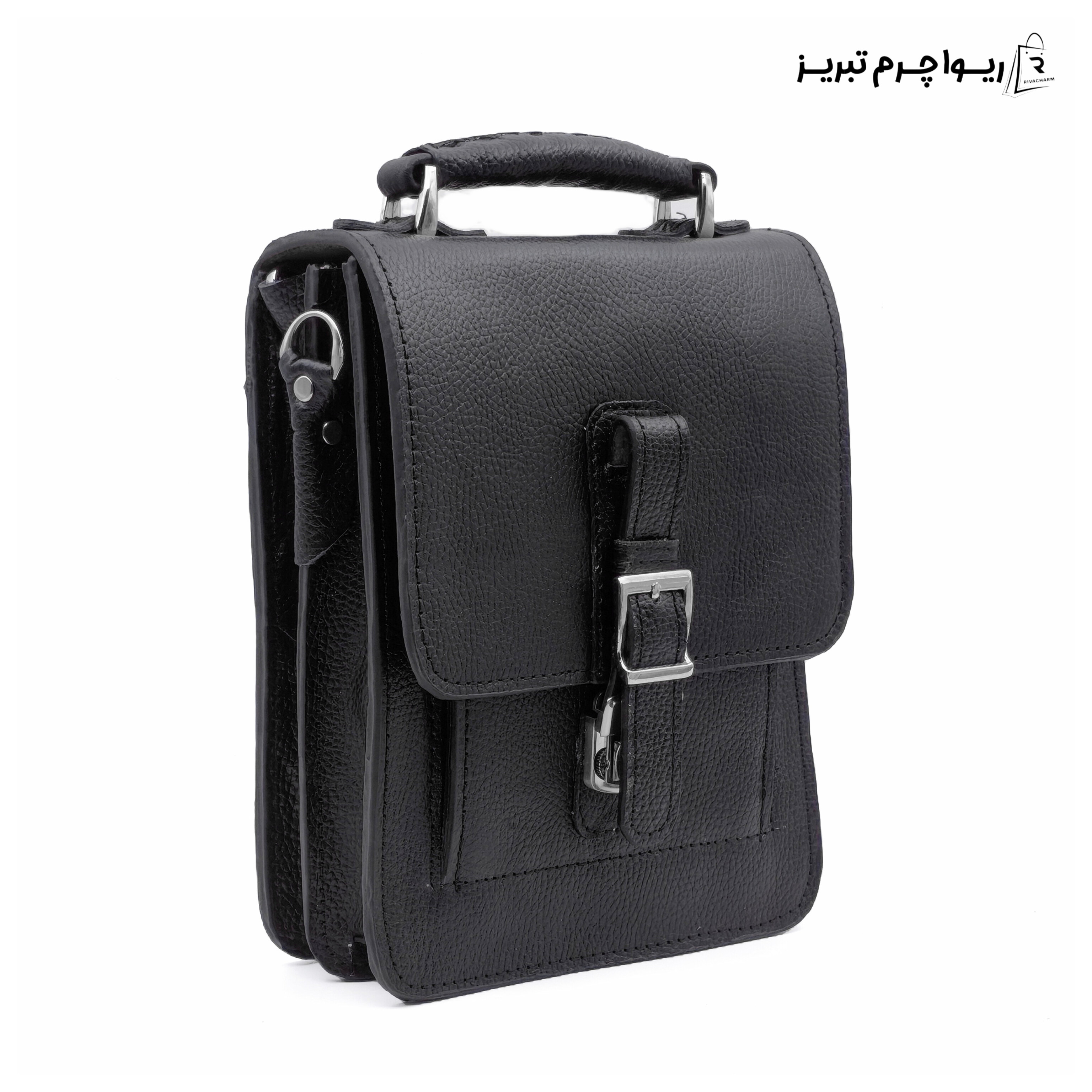 کیف نیم اداری دستی و دوشی چرم مردانه رویه کار چرم گاوی فلوتر میلینگ کار شده داخل کار از اشبالت طبیعی گاوی کار شده یراق آلات فلزی خارجی رنگ ثابت می باشد دارای بند دوشی چرم دولایه مناسب استایل های رسمی و نیمه رسمی ، دارای قفل رمز دار که میتوانید رمز دلخواه خود را تنظیم کنید . این کار دو طبله است و انواع اقسام مدارک را میتوان باهاش به همراه داشت